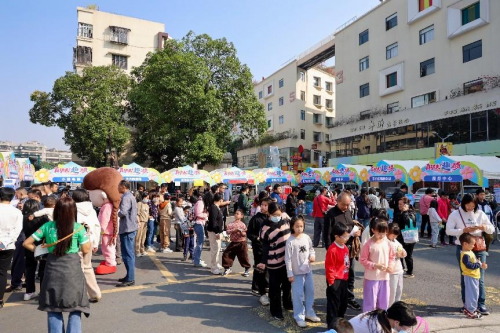 现场特别设置了“功夫家嫂”IP主题打卡点、亲子游戏角及互动环节,形成了一条集拍照、体验、娱乐于一体的互动乐趣。许多家庭在此驻足游玩,现场欢声笑语不断。