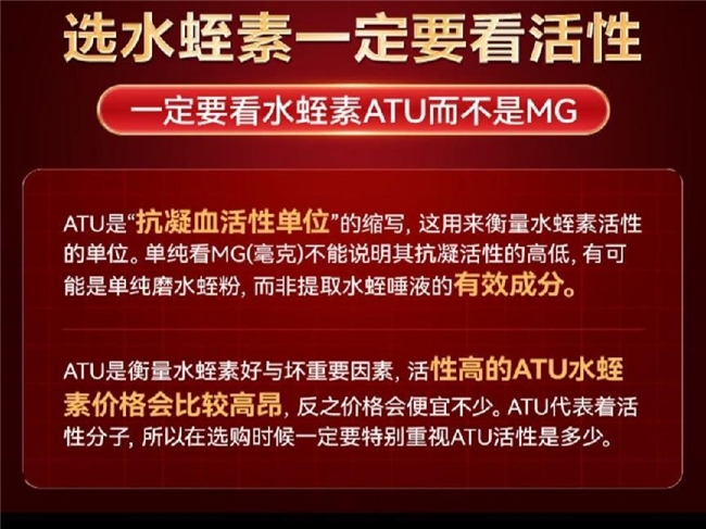 日本医蛭水蛭素:单瓶 12000mg(144000ATU),ATU 为国际活性标准,作用温和且稳定,助力循环平稳运行;